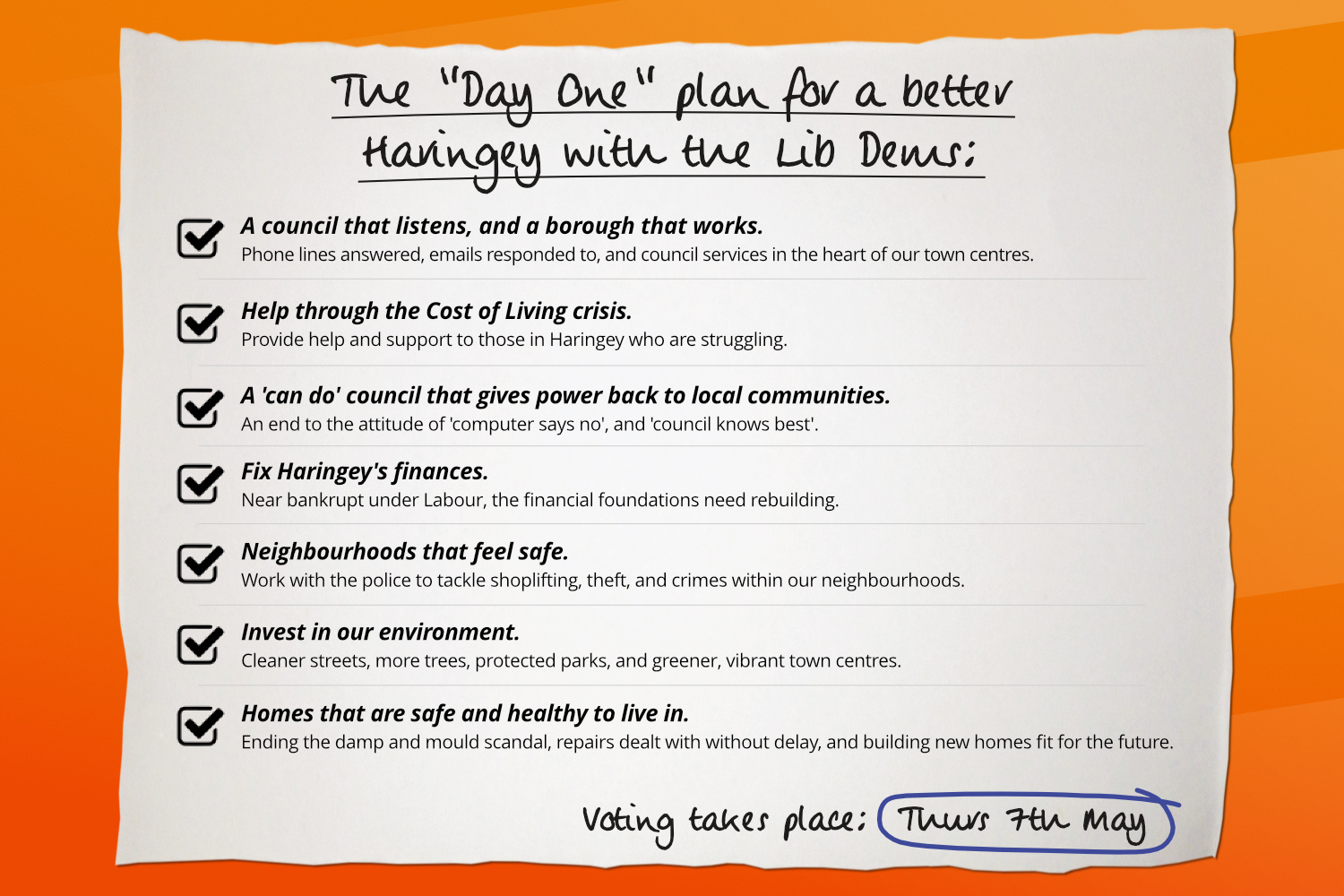 The "Day One" plan for a better Haringey with the Lib Dems